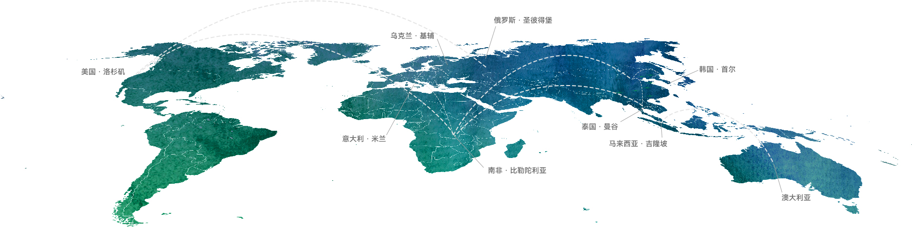 美國洛杉磯、俄羅斯圣彼得堡、烏克蘭基輔、意大利米蘭、韓國首爾、泰國曼谷、馬來西亞吉隆坡、澳大利亞墨爾本、南非比勒陀利亞等國內、國際平臺的建設正在全面推進。